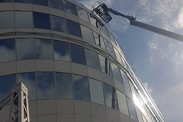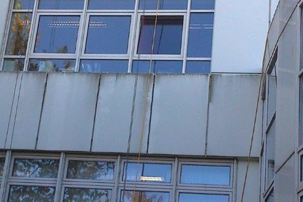 7.560 m² pulverbeschichtete Fensterrahmen und Glasflächen außen